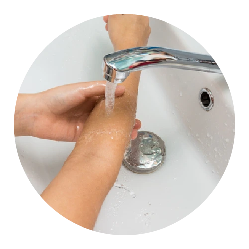 اغسل البشرة باستخدام ماء دافئ وصابون معتدل وخالي من العطور وجفّف الجلد بلطف باستخدام منشفة ناعمة دون فرك